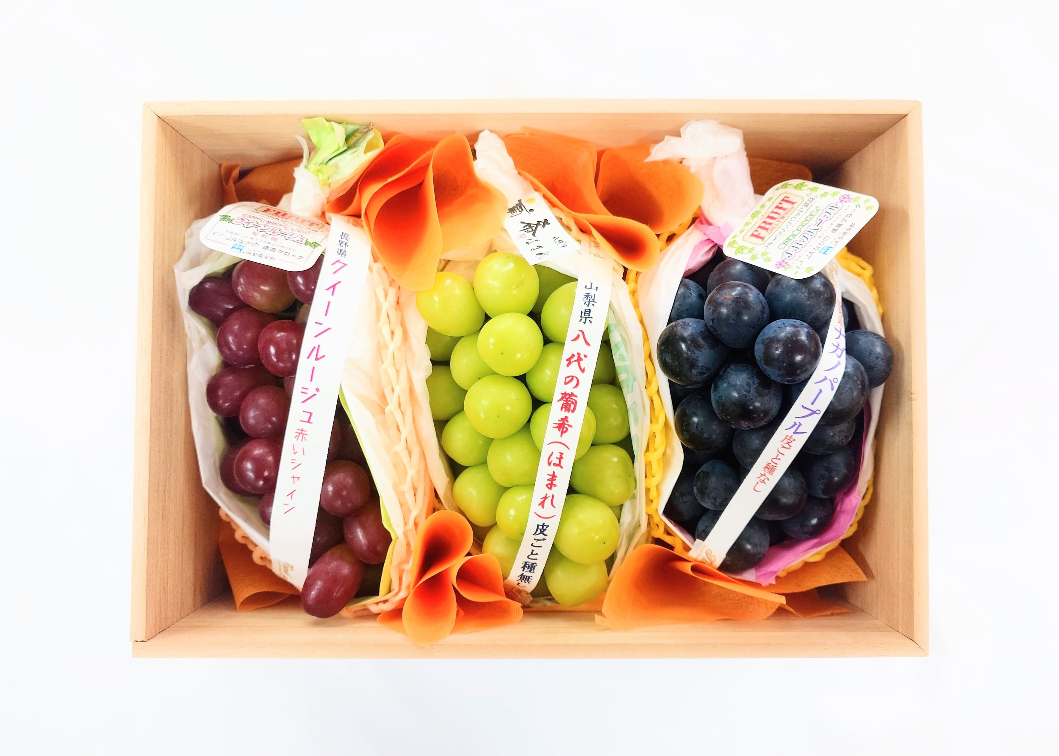 ※葡萄の品種や産地は、その時期におすすめするものをお詰めいたします。お写真とはこと阿なる可能性がございますので、ご了承のうえご注文をお願いいたします。