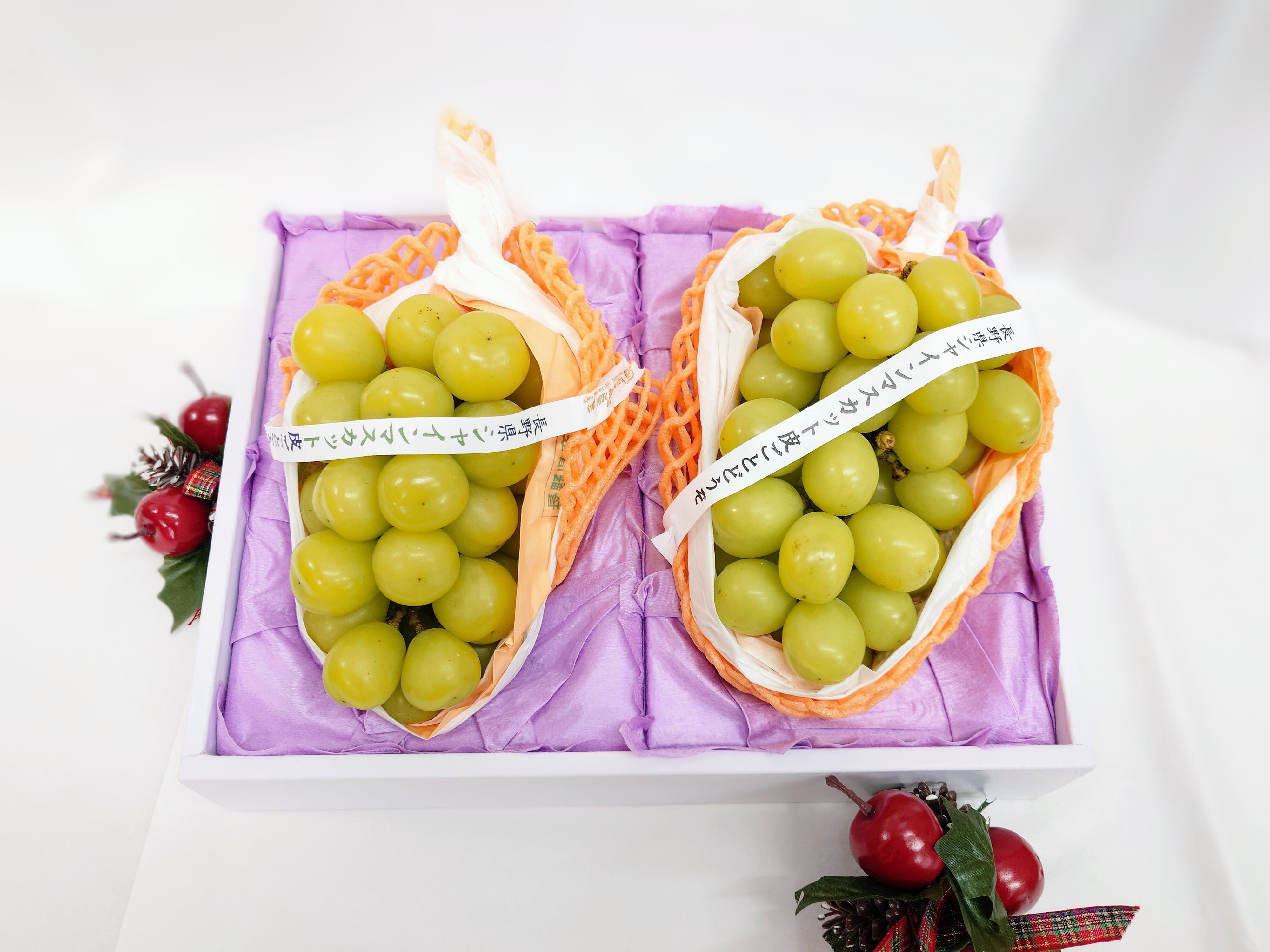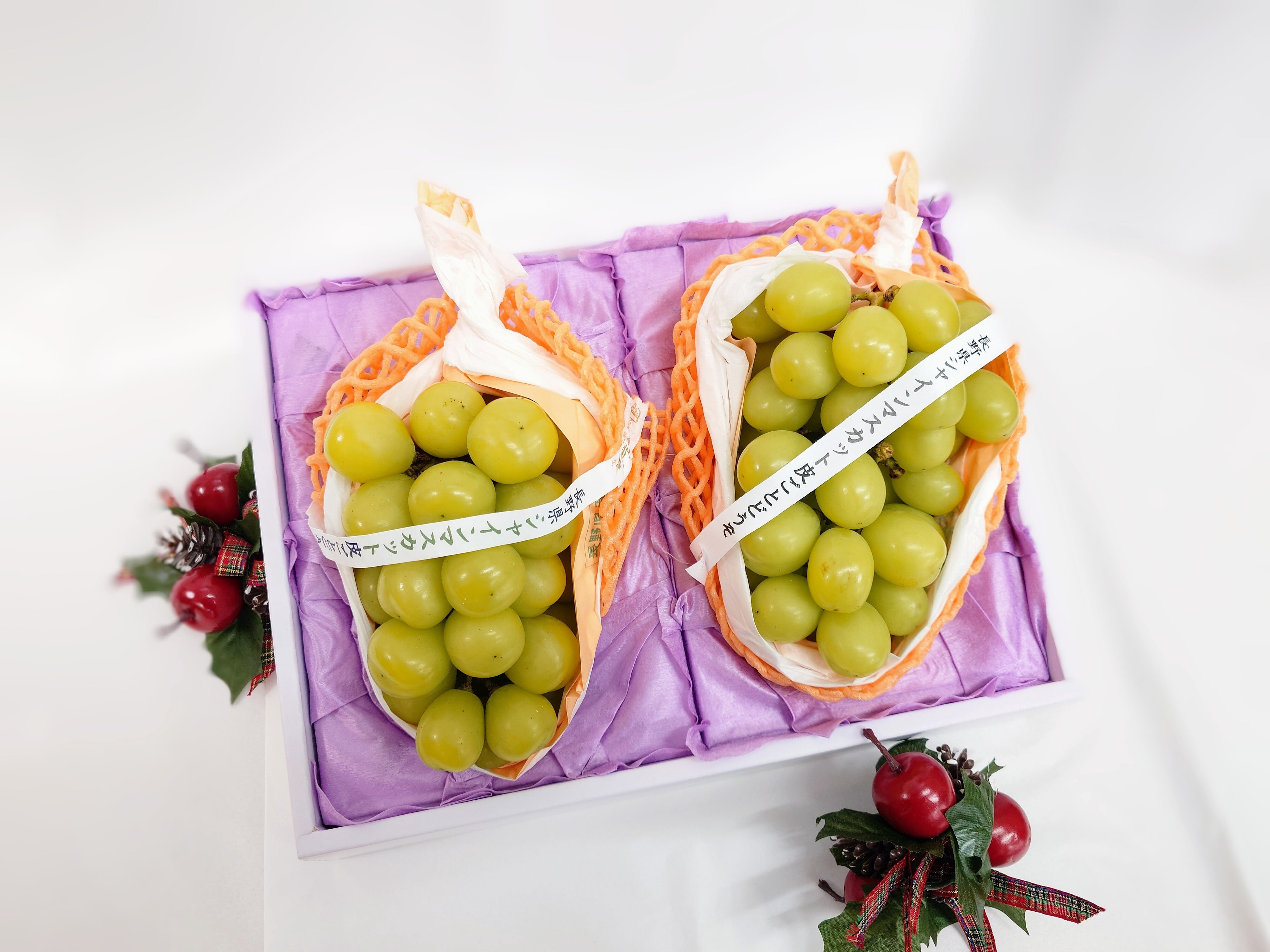 ブドウの中でも一番人気のシャインマスカット2房を豪華にお詰めしました。
