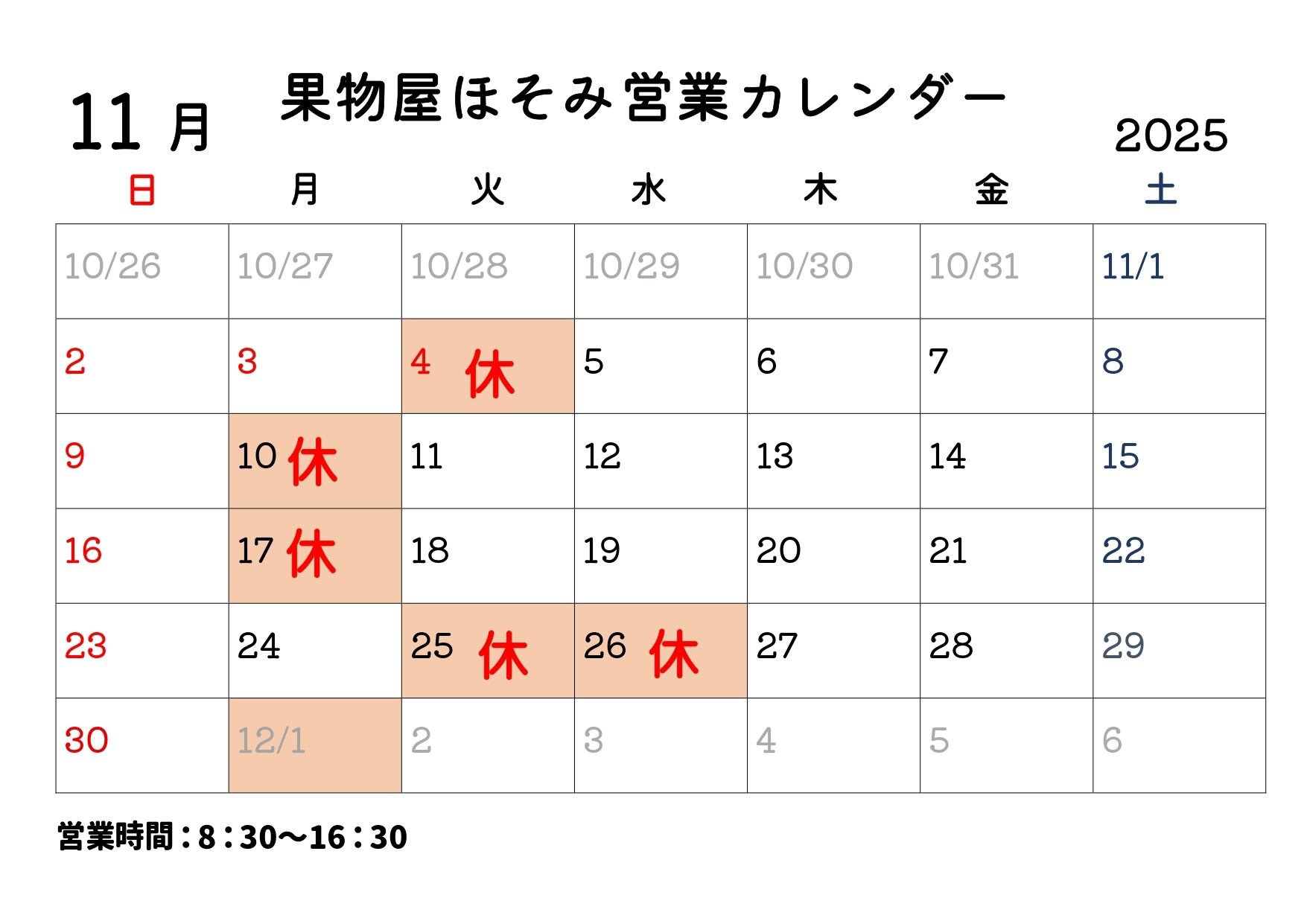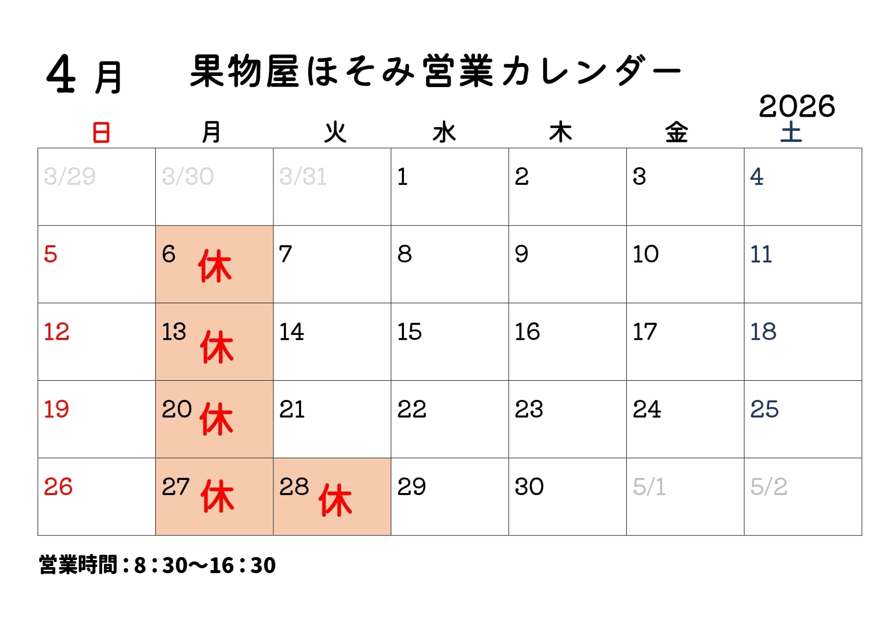 営業日 | 果物屋ほそみオンラインショップ